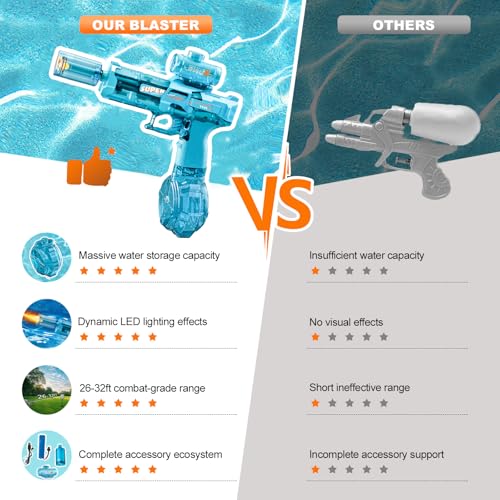 - إعادة تعبئة سهلة وتدوم طويلاً - يحمل مسدس الماء هذا الكثير من الماء، لذلك يمكنك اللعب لفترة طويلة دون الحاجة إلى التوقف وملئه طوال الوقت. من السهل جدًا إعادة ملئها أيضًا. مثالية لمتعة الصيف التي لا نهاية لها في الفناء الخلفي أو على الشاطئ أو في حمام السباحة.