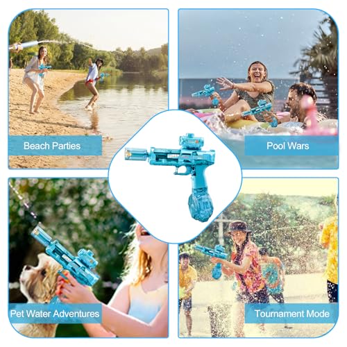 StimuVariety - مسدس ماء كهربائي للبالغين والأطفال، مسدس ماء أوتوماتيكي مع أضواء ليد، ألعاب حفلات الشاطئ وحمام السباحة في الهواء الطلق، لون أزرق