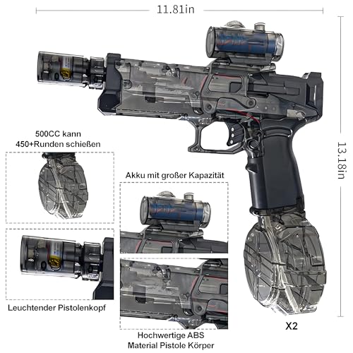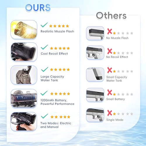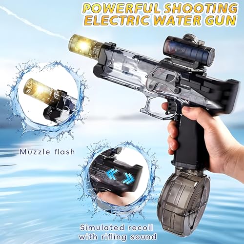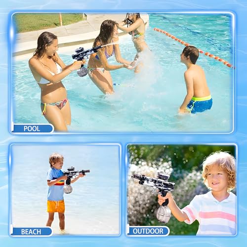 - جودة عالية للغاية: مسدس الماء الكهربائي الخاص بنا مصنوع من مادة ABS القوية، وهو متين وخالي من الأجزاء الصغيرة أو الحواف الحادة. آمنة جدًا للأطفال. حاوية المياه محكمة الغلق مانعة للتسرب وتطيل وقت اللعب بشكل كبير.