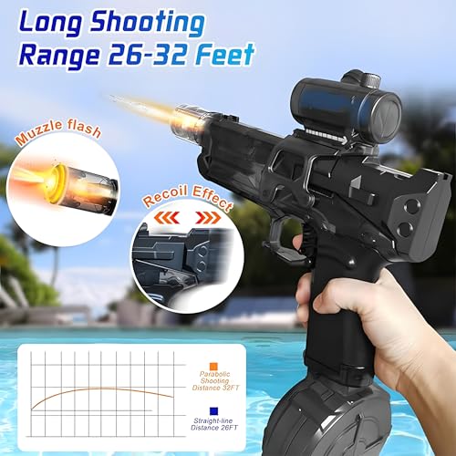 - مسدس مياه بسعة كبيرة ومدى طويل: يحتوي مسدس المياه الكهربائي الأوتوماتيكي هذا على خزان مياه 500 سي سي ونطاق تقريبًا 6 أمتار. بغض النظر عن مكان خصمك، يمكنك تبليله بسهولة في النطاق باستخدام مسدس الماء الأوتوماتيكي الفائق. توفر للأطفال والكبار تجربة إطلاق نار وقتال أفضل.