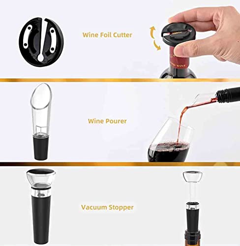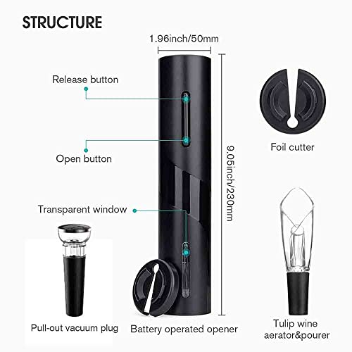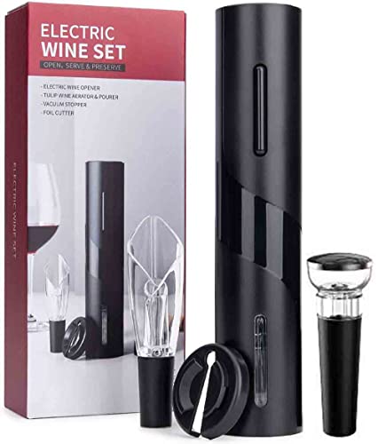 RUQIWEMI - فتاحة زجاجات كهربائية تعمل بالبطارية، مجموعة مكونة من فتاحة زجاجات أوتوماتيكية مع قطاعة الورقة المعدنية وسدادة وصباب لمحبي المشروبات والمطبخ والحفلات المنزلية من روكيويمي (DCK601901A)