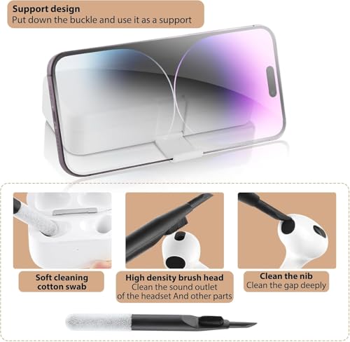 - قلم تنظيف سماعة الرأس - ينظف سماعة الأذن والأماكن البعيدة التي يصعب الوصول إليها بعمق. ماسحة قطنية ناعمة ونظيفة تنظف علبة شحن سماعات الأذن، مع رأس فرشاة عالي الكثافة لتنظيف مخرج الصوت لسماعة الرأس والأجزاء الأخرى وطرف لتنظيف الفجوات بعمق.