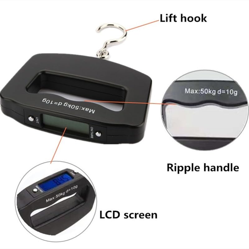 Generic - ميزان إلكتروني بشاشة رقمية ال سي دي لشنط السفر، ميزان معلق محمول مع خطاف سعة 50 كجم، مناسب للمنزل والمطار