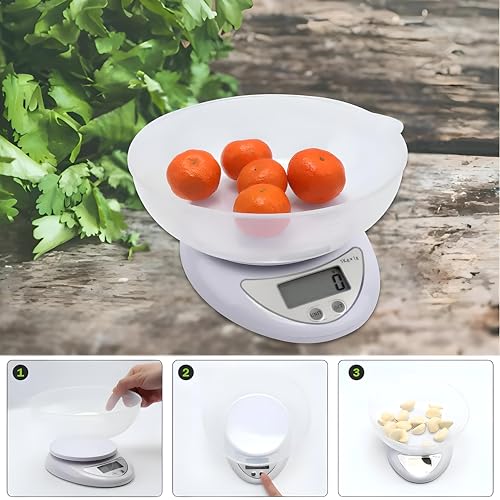 - يتميز ميزان المطبخ الإلكتروني بوعاء مدمج كبير بسعة 800 مل وقطر 17.5 سم، مما يجعله مثاليًا لوزن مجموعة متنوعة من المكونات مثل الفواكه والخضروات واللحوم والسلع الجافة مثل الدقيق والأرز. يلبي هذا التصميم المدروس عشاق الطهي، مما يضمن أنه يمكنك قياس المكونات بدقة دون الحاجة إلى حاويات إضافية، مما يبسط عملية الطهي.