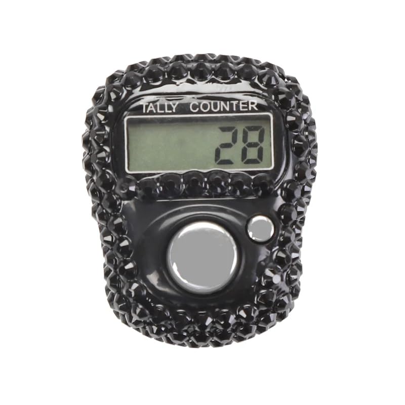 Generic - أداة تسبيح إلكترونية رقمية (خاتم تسبيح بسيط مرصع استراس، أسود، 1011)