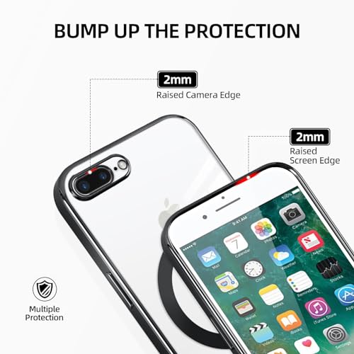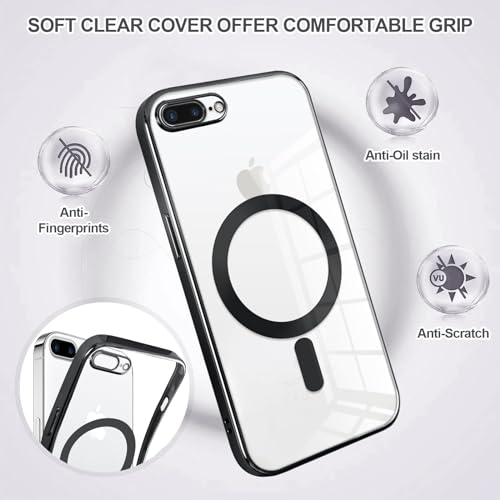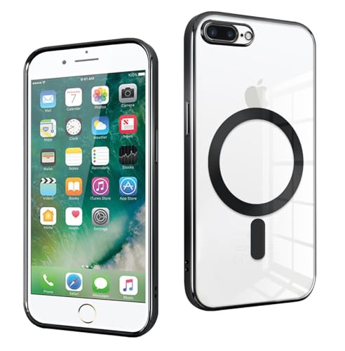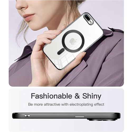 Generic - جراب حماية مطلي بالكهرباء لموبايل آيفون 7 بلس/آيفون 8 بلس كاملة لعدسة الكاميرا متوافق مع الشحن اللاسلكي ماج سيف غطاء مغناطيسي ناعم مضاد للصدمات من البولي يوريثين الحراري لون أسود