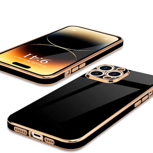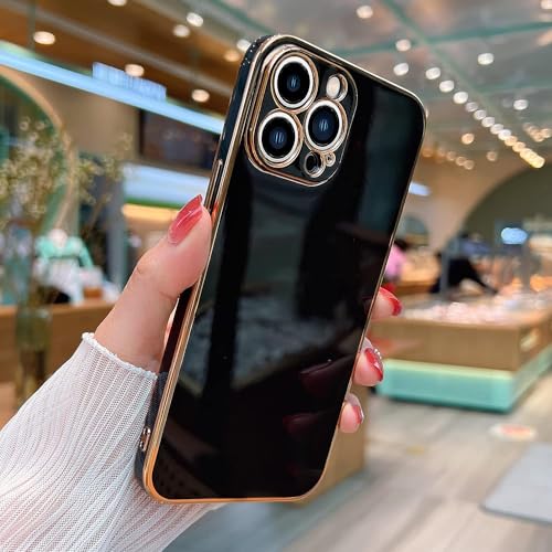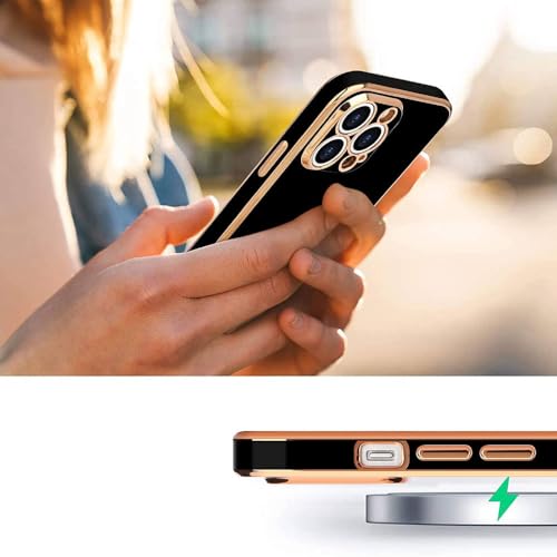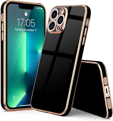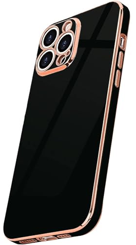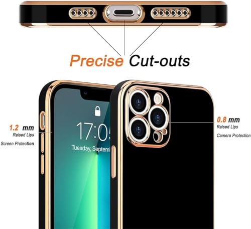 Generic - جراب حماية ناعم ومتين ومضاد للصدمات من بولي يوريثين مقاوم للحرارة وللسقوط بإطار وحواف مطلية بالكهرباء لحماية هيكل الموبايل والكاميرا بالكامل لموبايل ايفون 13 برو بشاشة 6.1 بوصة - أسود