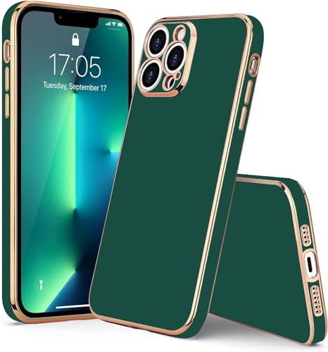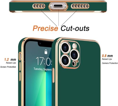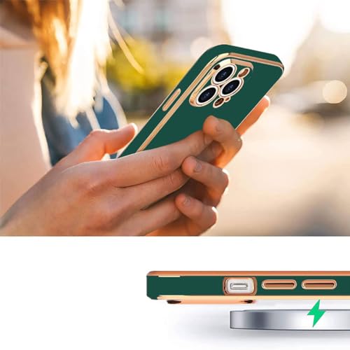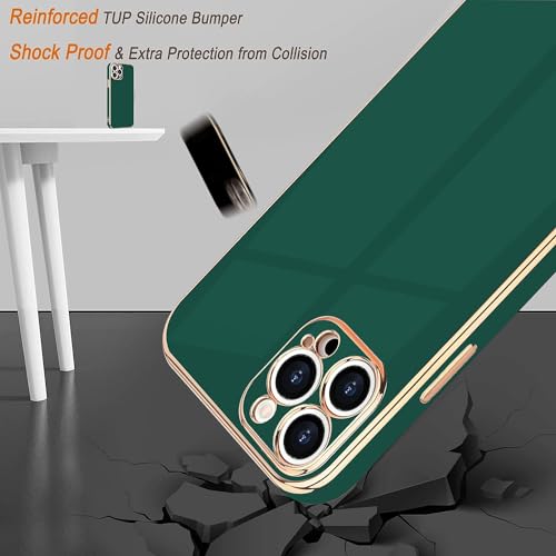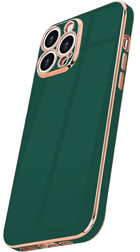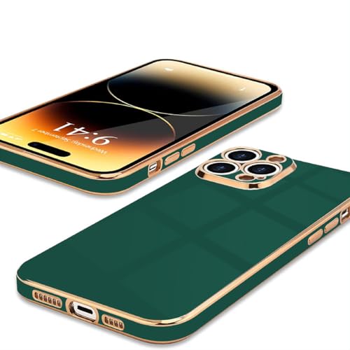 Generic - جراب حماية ناعم ومتين ومضاد للصدمات من بولي يوريثين مقاوم للحرارة وللسقوط بإطار وحواف مطلية بالكهرباء لحماية هيكل الموبايل والكاميرا بالكامل لموبايل ايفون 14 برو ماكس 6.7 بوصة - أخضر غامق