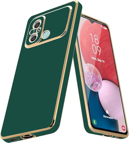 Generic - جراب حماية مضاد للصدمات بتغطية كاملة للكاميرا بإطار مرن من بولي يوريثين مقاوم للحرارة وحافة مطلية بالكهرباء لموبايل شاومي ريدمي 12C، أخضر داكن