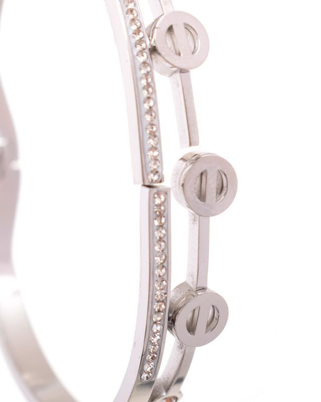 Elegance - اليجانس سوار معصم من الستانلس ستيل للنساء مقاس واحد - فضي