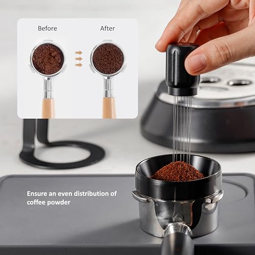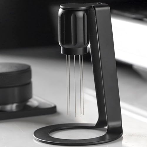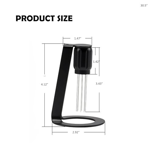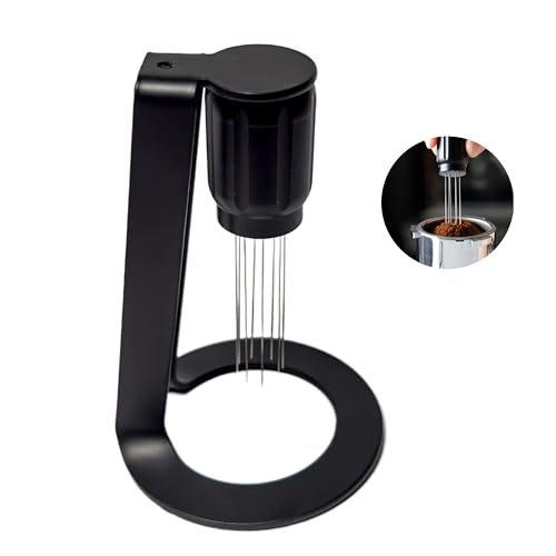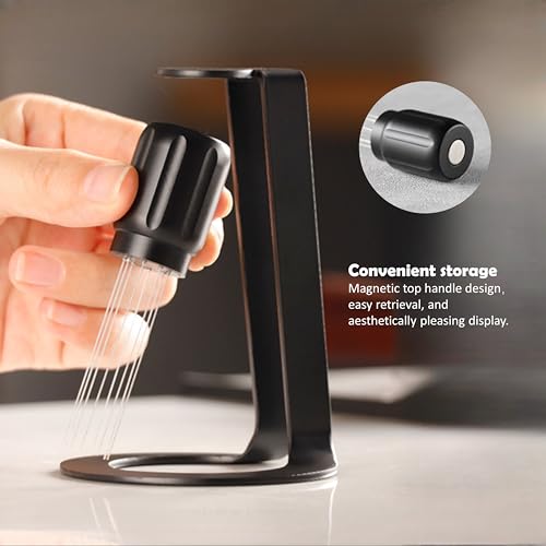 EleganceEssentials - اداة توزيع الابر من اليجانس اسينشال، اداة دبليو دي تي اسبريسو من الستانلس ستيل، 7 ابر من الستانلس ستيل، مع 3 ابر اضافية قابلة للاستبدال، مقبض من خليط الالومنيوم مع حامل. (اسود)