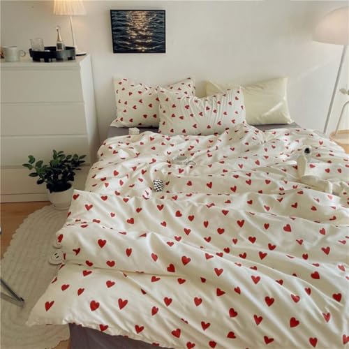 Generic - غطاء لحاف مزدوج انيق من القطن بنسبة 100% مقاس 220 × 240 سم قابل للعكس بطباعة قلب وسحاب ناعم وجيد التهوية وفاخر للمنزل وغرفة النوم