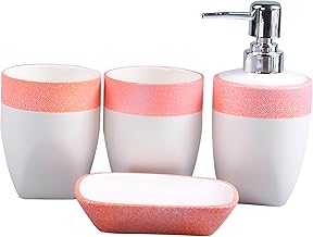 • موزع صابون سائل بتصميم هندسي جذاب ومضخة فضية لامعة، وكوبًا أنيقًا لحفظ فرش الأسنان أو معجون الأسنان، وصحنًا أنيقًا للصابون الصلب بتصميم متناسق.