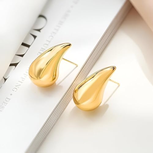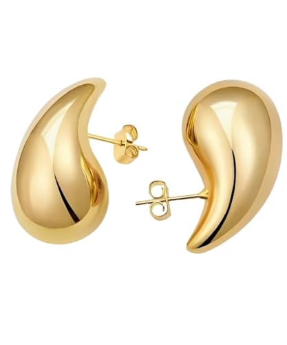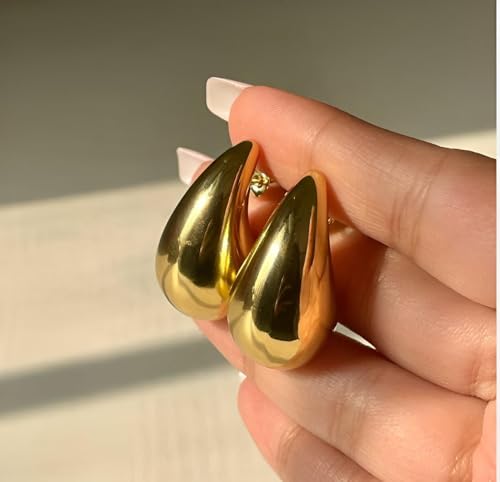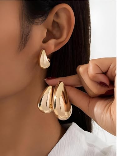Generic - اكسسوارات انيقة - اقراط حلقية على شكل دمعة مطلية بالذهب، نمط متدلي عصري، اغلاق يعمل بالضغط، مثالية لملابس المناسبات الخاصة للنساء