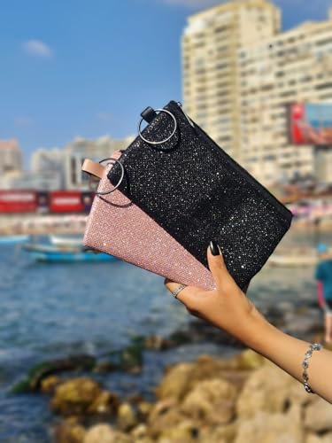 Generic - محفظة نسائية لامعة للمناسبات الخاصة، بتصميم فاخر باللون الروز الأسود مع لمسة براقة