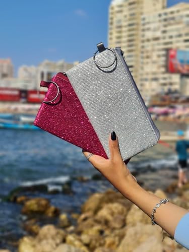 Generic - محفظة نسائية انيقة ولامعة - شنطة يد صغيرة للحفلات المسائية والمناسبات الخاصة (لون فضي بورجني)