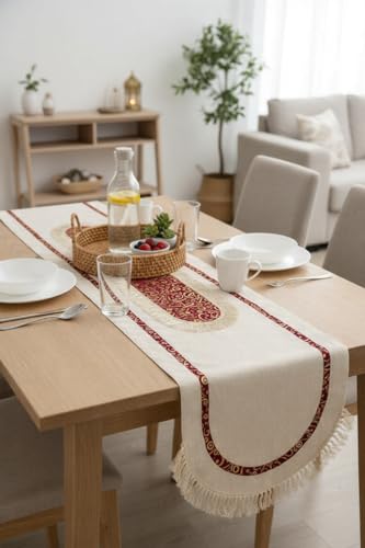 AREXOL - مفرش طاولة كتان بتصميم عربي أنيق للمجلس وطاولات الطعام 1.50 م × 50 سم للمناسبات الخاصة والاستخدام اليومي