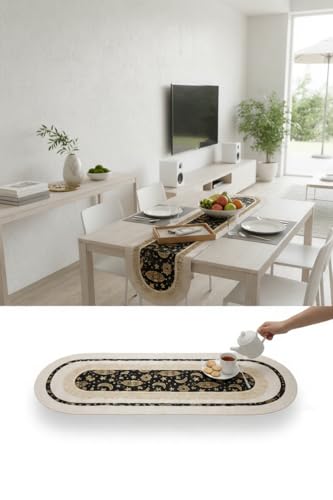 - ✅ 【تصميم أنيق】يتميز مفرش الطاولة بنمط زخرفي عربي متطور يعزز مستوى أي طاولة طعام أو قهوة بلمسة أنيقة وفنية، مما يمنحك قطعة مركزية جذابة بصريًا تعزز التصميمات الداخلية الحديثة والتقليدية بسلاسة. 🎨