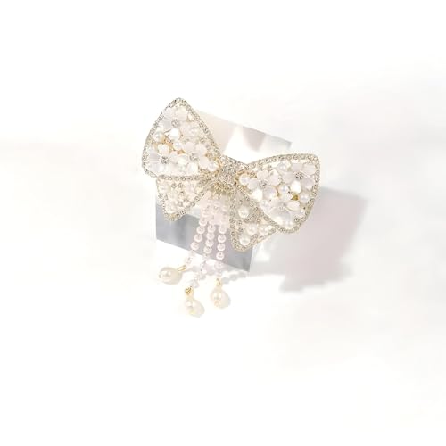 Generic - تصميم قوس أنيق مع شراب اللؤلؤ فو الحساس، حامل ذيل حصان مثالي غير قابل للانزلاق للنساء والنساء