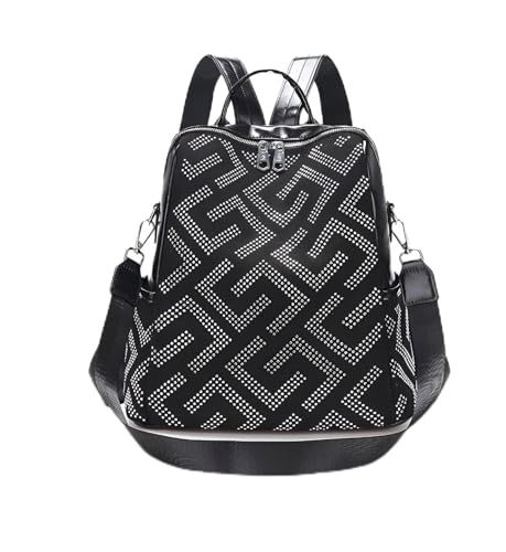 Generic - شنطة ظهر أنيقة من الجلد الصناعي مرصعة بنمط هندسي قابلة للتحويل إلى شنطة كتف بجيب رئيسي بسوستة وجيب أمامي خفيفة الوزن ومناسبة للتنقل اليومي