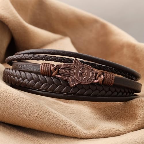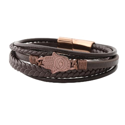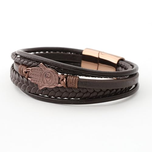 Elegant Bear - سوار جلد طبيعي بني كارما بني بتصميم مضفر مع لمسة معدنية