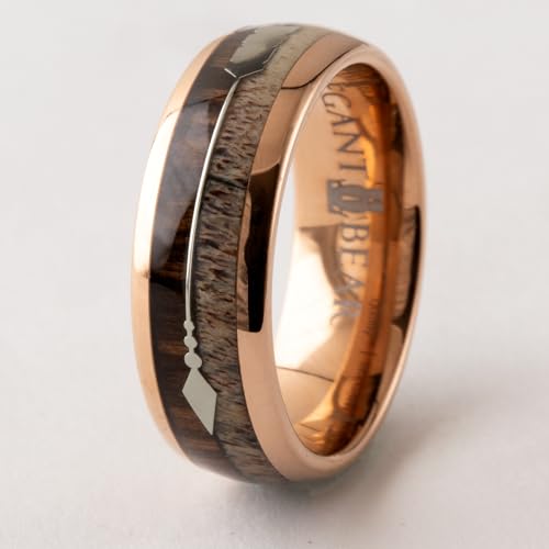 Elegant Bear - خاتم ذهبي من كربيد التنجستين مرصع بخشب الكوا الطبيعي وعاج الغزلان الطبيعي A94 (19.5 ايطالي)، من ايليجانت بير، معدن