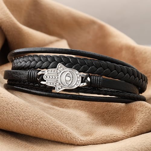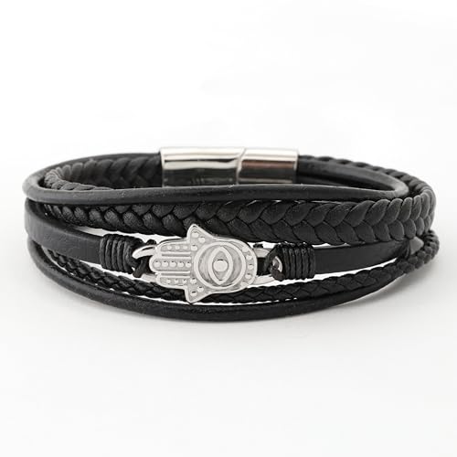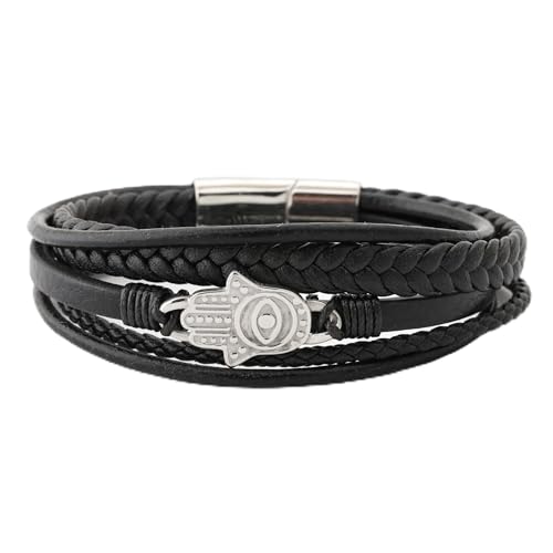 Elegant Bear - ايليجانت بير سوار جلد طبيعي اسود من سيلفر كارما، تصميم مضفر مع لمسة معدنية