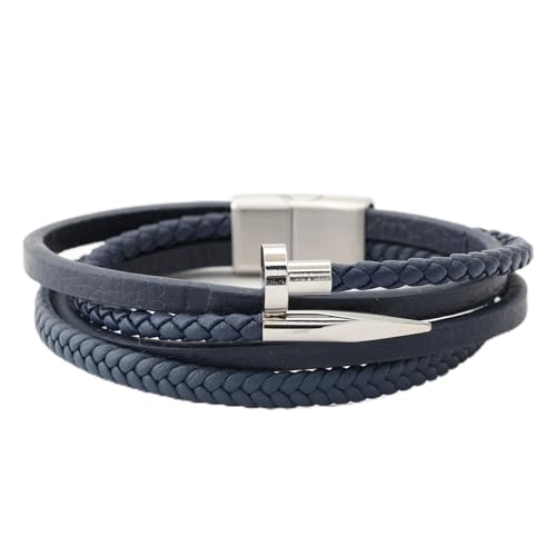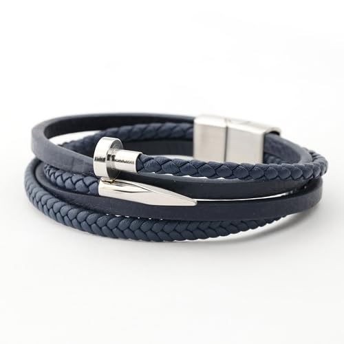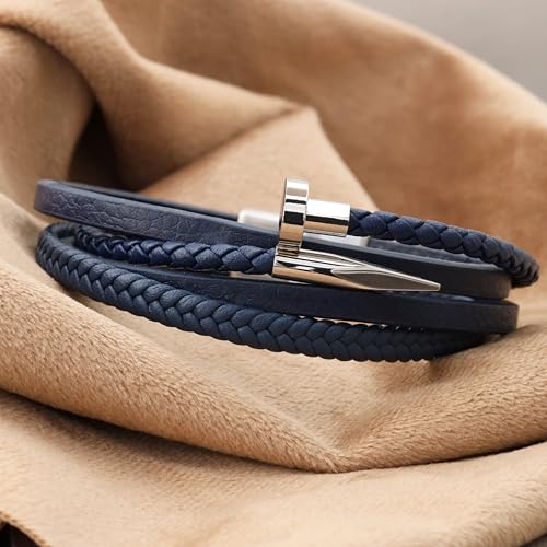 Elegant Bear - سوار من الجلد الطبيعي باللون الفضي والازرق