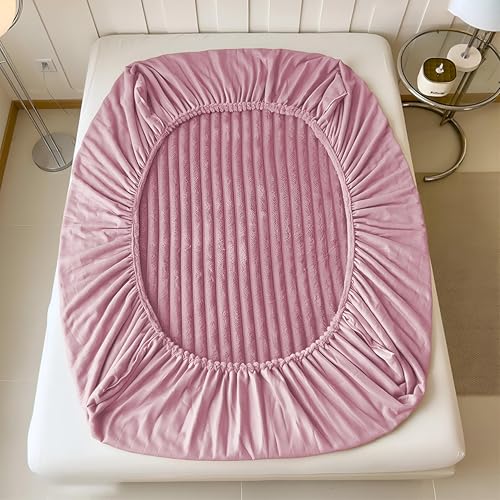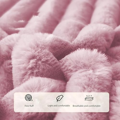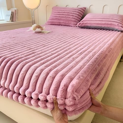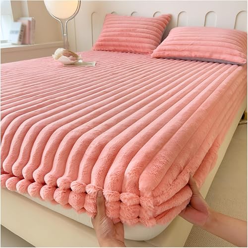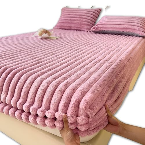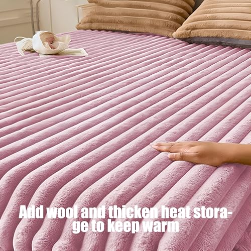 Generic - شراشف انيقة - فرو صناعي قصير بلون بني فاتح مع نسيج مضلع مريح، كامل مع وسادتين مزخرفتين، غطاء سرير شتوي 160 سم لراحة قصوى (بينك-ايه)