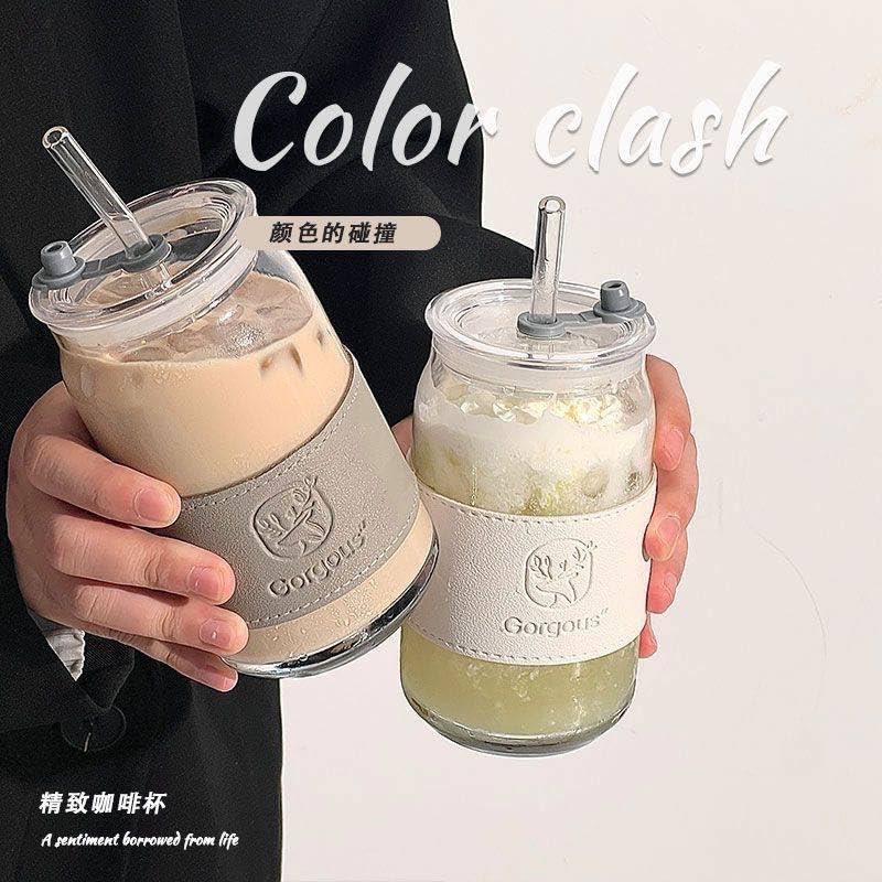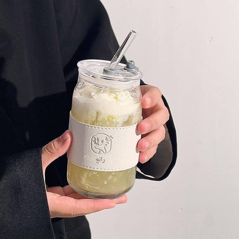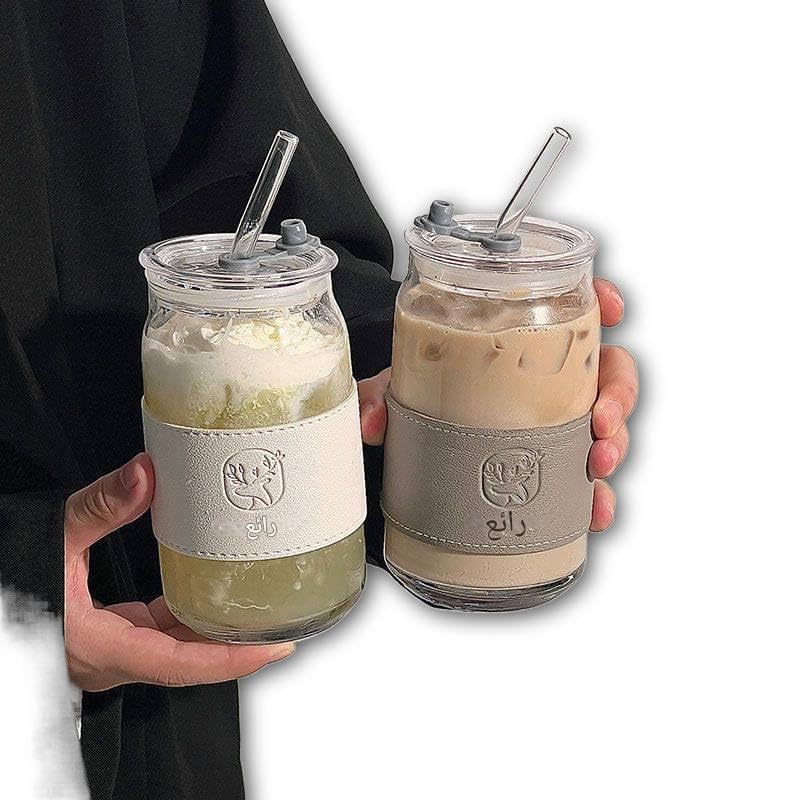- يتميز هذا الكوب الزجاجي الأنيق بسعة 500 مل بتصميم أنيق مع غطاء أكريليك وماصة زجاجية، مما يجعله مثاليًا للمشروبات الساخنة والباردة. لا يضيف المقبض الجلدي لمسة من الأناقة فحسب، بل يضمن أيضًا قبضة مريحة، مثالية للاستخدام اليومي والسفر.