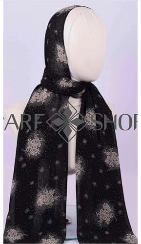 Generic - سكارف شيفون اسود انيق بنمط زهور، 150 سم