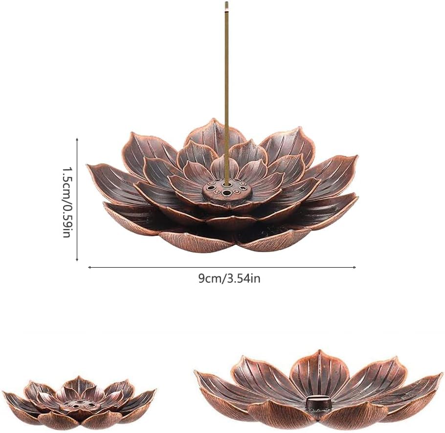 - 【نمط وردة فني】تتميز مبخرة الورد النحاسية هذه بتصميم زهور مصنوع بعناية يضيف الرقي والأناقة إلى أي غرفة معيشة أو غرفة نوم أو مكتب أو مساحة تأمل، وتعمل كحامل بخور عملي وقطعة ديكور مميزة ترفع من أسلوبك الداخلي مع ملء الغرفة بالرائحة المهدئة للبخور أو العود المفضل لديك.