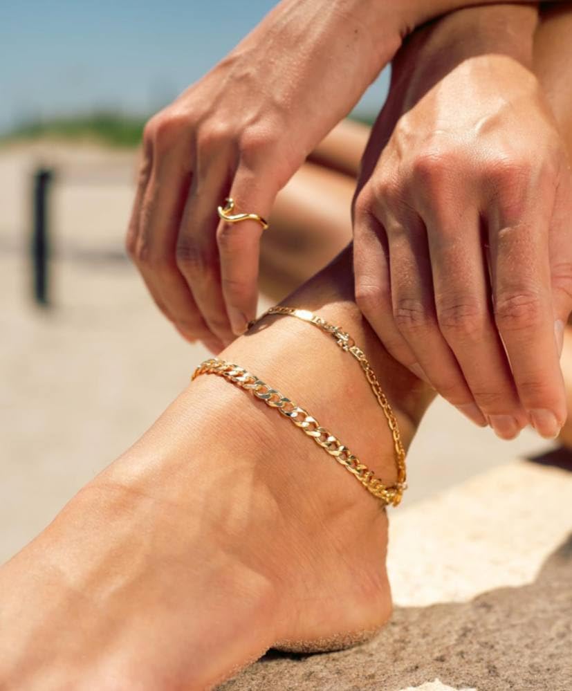 Generic - خلخال سلسلة انيق للنساء والفتيات بتصميم كوبي بلون ذهبي مجوهرات هدية مثالية لجميع المناسبات
