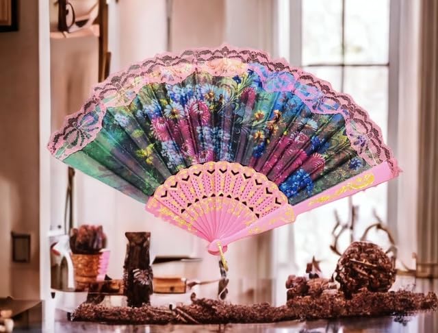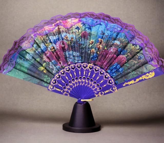 Generic - مروحة يد أنيقة من حرير ياباني صيني قابلة للطي للنساء، عتيقة ساحرة لحفلات الزفاف (بنفسجي)، عدد المنافذ: 4، 100 واط