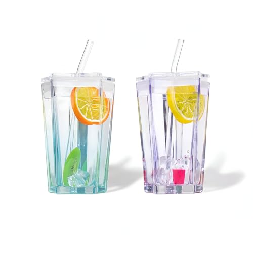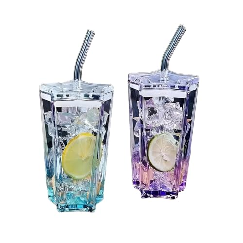 - ⭐【تصميم عصري】يتميز كوب الشرب المصنوع بشكل فريد بتصميم خماسي، مما يخلق تأثيرًا مذهلًا حيث يتفاعل الضوء مع الزجاج الملون. لا يعمل مظهره النابض بالحياة على تعزيز عرض المشروبات فحسب، بل يضيف أيضًا عنصرًا مرحًا إلى متعة مشروبك، مما يجعله جميل وعملي للغاية للاستخدام اليومي.