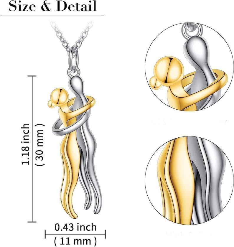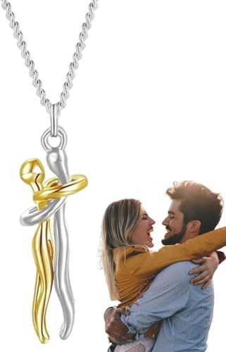 Generic - عقد عناق الازواج الانيق - قلادة رومانسية بلونين ذهبي وفضي للنساء والرجال | هدية مجوهرات احتضان الحب
