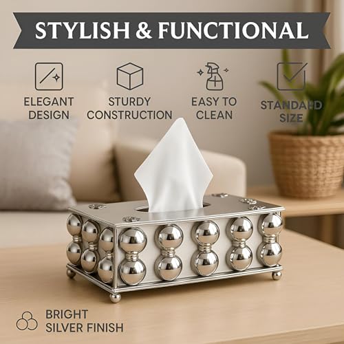 - مصمم كحامل لمناديل الوجه، ويوفر حلاً أنيقًا وعمليًا للحفاظ على المناديل مخزنة بأناقة مع تعزيز الديكور. تضمن مادته الممتازة المتانة والمظهر الأنيق للاستخدام اليومي.