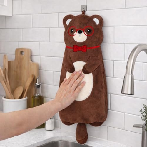 Generic - منشفة يد معلقة انيقة لطيفة على شكل حيوانات كرتونية من قماش ناعم ماص لديكور المطبخ والحمام مع حلقة للاستخدام المنزلي 80 سم (دب)