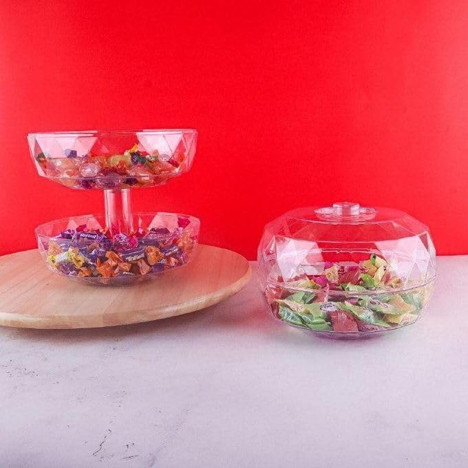 - ✅【تصميم ماسي أنيق】قم بتحويل تجربة تناول الطعام الخاصة بك مع صينية تقديم الحلوى الشفاف الفاخر هذا على شكل الماس الذي يرفع من أي إعداد للطاولة، مما يجعله مثاليًا لعرض المكسرات والحلوى والوجبات الخفيفة مع استخدامه كقطعة مركزية مزخرفة مذهلة للحفلات أو التجمعات أو الأناقة المنزلية اليومية. 💎