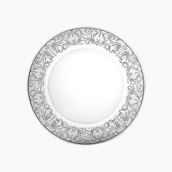 Generic - طبق عشاء انيق بتصميم حواف زهور فضية، 27 سم، 2 طبق ابيض وفضي