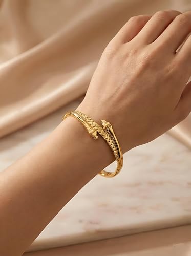 Generic - سلسلة ثعبان مزدوجة انيقة - سوار ذهبي منقوش للنساء لإضافة لمسة فاخرة واكسسوار عصري فريد