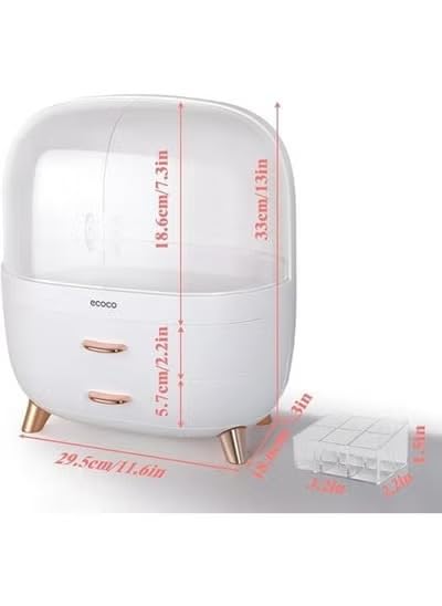 - ★【الغبار والماء】- احمِ مستحضرات التجميل الخاصة بك من الغبار والماء مع صندوق منظم المكياج هذا. تحافظ خزانة العرض الشفافة ذات الباب المزدوج وحوض الغسيل المغطى على مستحضرات التجميل الخاصة بك آمنة ومأمونة.