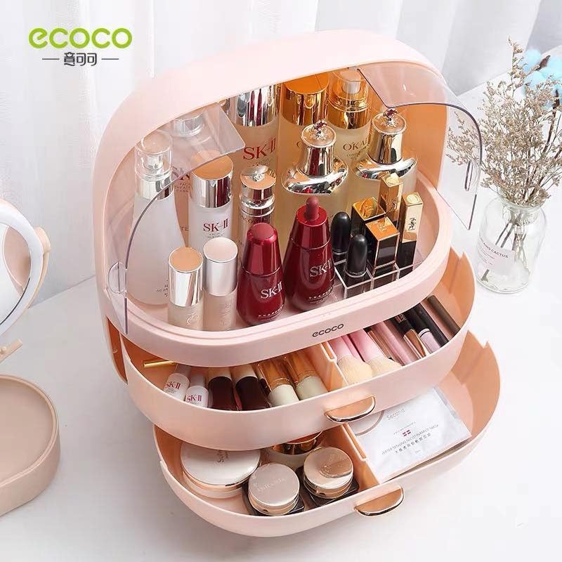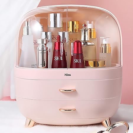 Generic - صندوق منظم مكياج انيق مقاوم للغبار، منظم مستحضرات تجميل كبير مقاوم للماء مع ادراج، حافظات عرض مستحضرات التجميل للعناية بالبشرة لسطح الطاولة والحمام وخزانة الملابس وغرفة النوم (بينك)