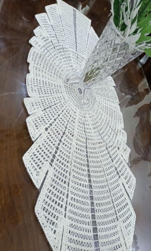 Generic - مفرش طاولة (رانر) كروشيه يدوي بتصميم ريشة أنيق - لون أوف وايت - ديكور مودرن وكلاسيك لغرفة السفرة والمناسبات