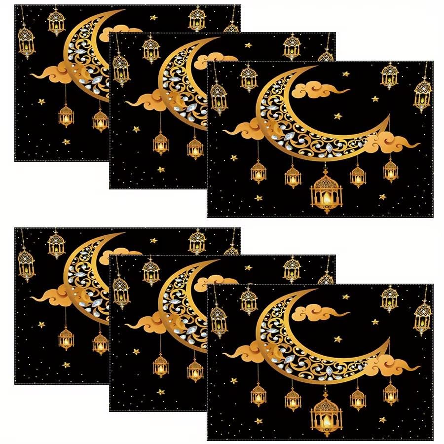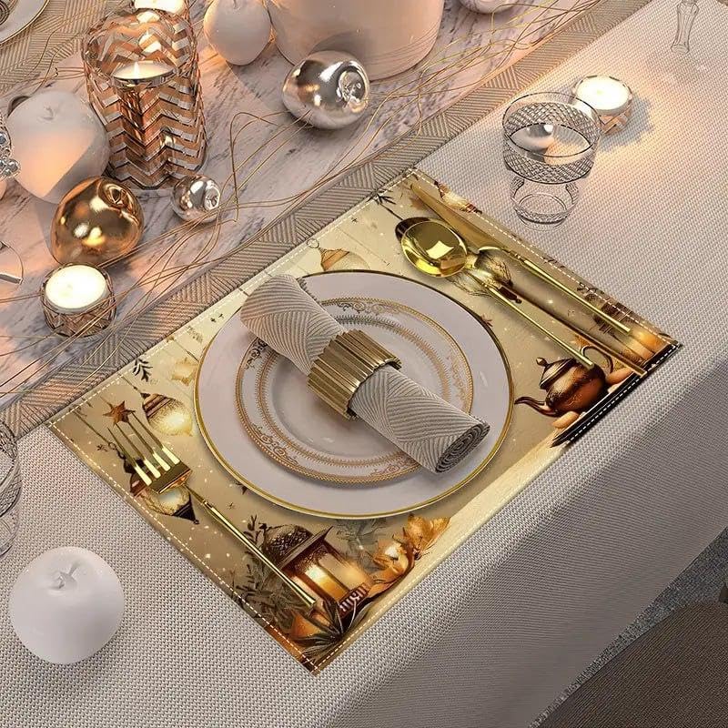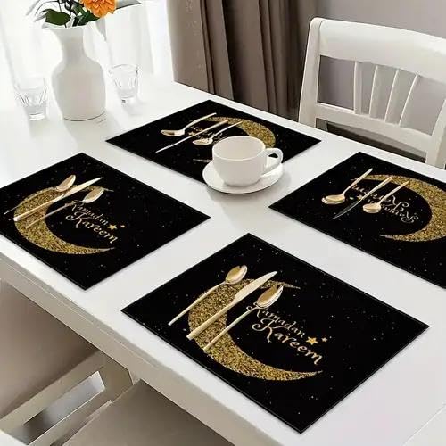 Generic - مجموعة مفارش أنيقة للمناسبات - بتصميم رسومات لشهر رمضان بقماش مطبوع ثلاثي الأبعاد أنيق، متعدد الاستخدامات للطاولات أو الصواني أو أغطية الثلاجة لتعزيز أجواء الاحتفالات، أبعاد 30 × 40 سم، 4 قطع