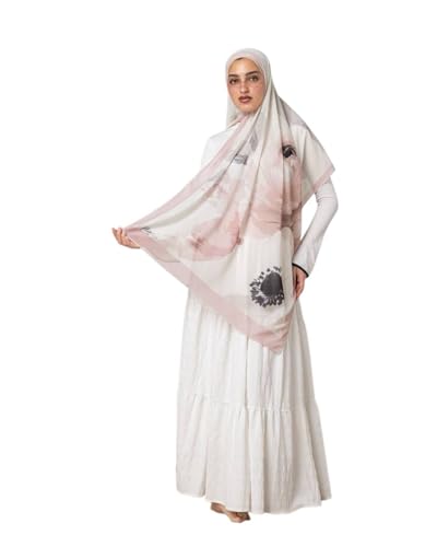 Generic - طقم فستان صلاة وحجاب بطبعة زهور انيقة، ابيض وبينك