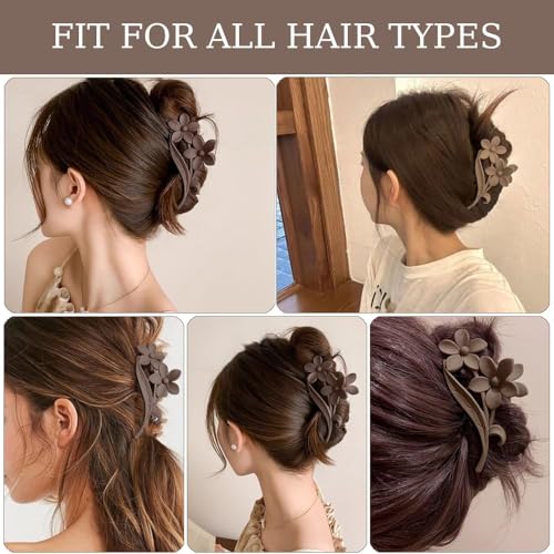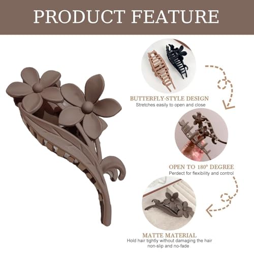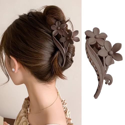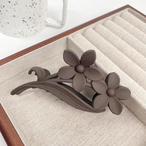 Generic - مشابك شعر مزينة بزهرة أنيقة مانعة للانزلاق – تثبيت قوي للشعر الكثيف والطويل بدون شد أو تكسر، تصميم أنثوي جذاب مناسب للاستخدام اليومي والمناسبات (بني)