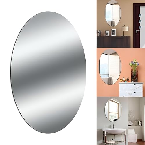 Generic - مرآة حائط أنيقة بدون إطار بيضاوي الشكل بلمسة نهائية شفافة، مقاس 15 × 18 بوصة، مثالية لروتين الجمال البسيط والديكور المنزلي الأنيق ورقه مراء