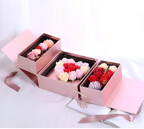 - يوفر الصندوق الفارغ هذا بمقاس تقريبي 44 سم × 15 سم × 5 سم، حيث يوفر مساحة واسعة لمجموعة متنوعة من الهدايا، بما في ذلك الزهور أو الشوكولاتة أو المجوهرات أو مستحضرات التجميل. تصميمه الواسع يجعله مثاليًا لترتيب الهدايا الشخصية مع إضافة لمسة رومانسية، مما يجعله عمليًا وفي الوقت ذاته معبرًا عن الاهتمام.