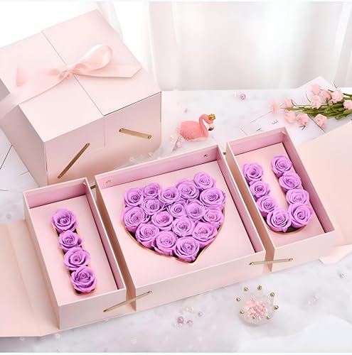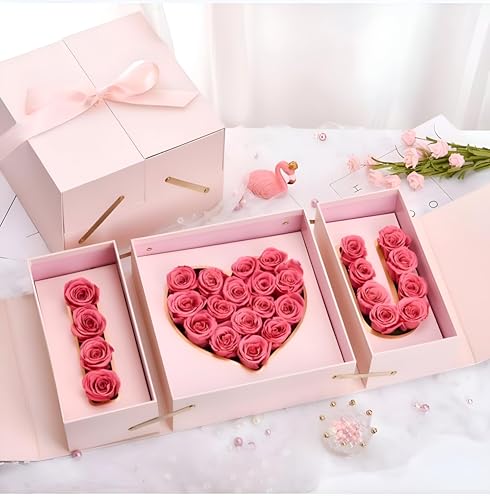 Generic - تغليف هدايا انيق - صندوق هدايا قابل لاعادة التعبئة على شكل حرف U بتصميم زهور متعدد الاستخدامات لعيد الحب وحفلات الزفاف والذكرى السنوية واعياد الميلاد وعيد الام مصمم لتعزيز هدايا الزهور